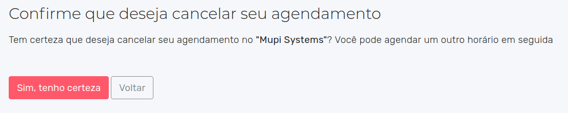 Em seguida confirme que quer cancelar seu agendamento: